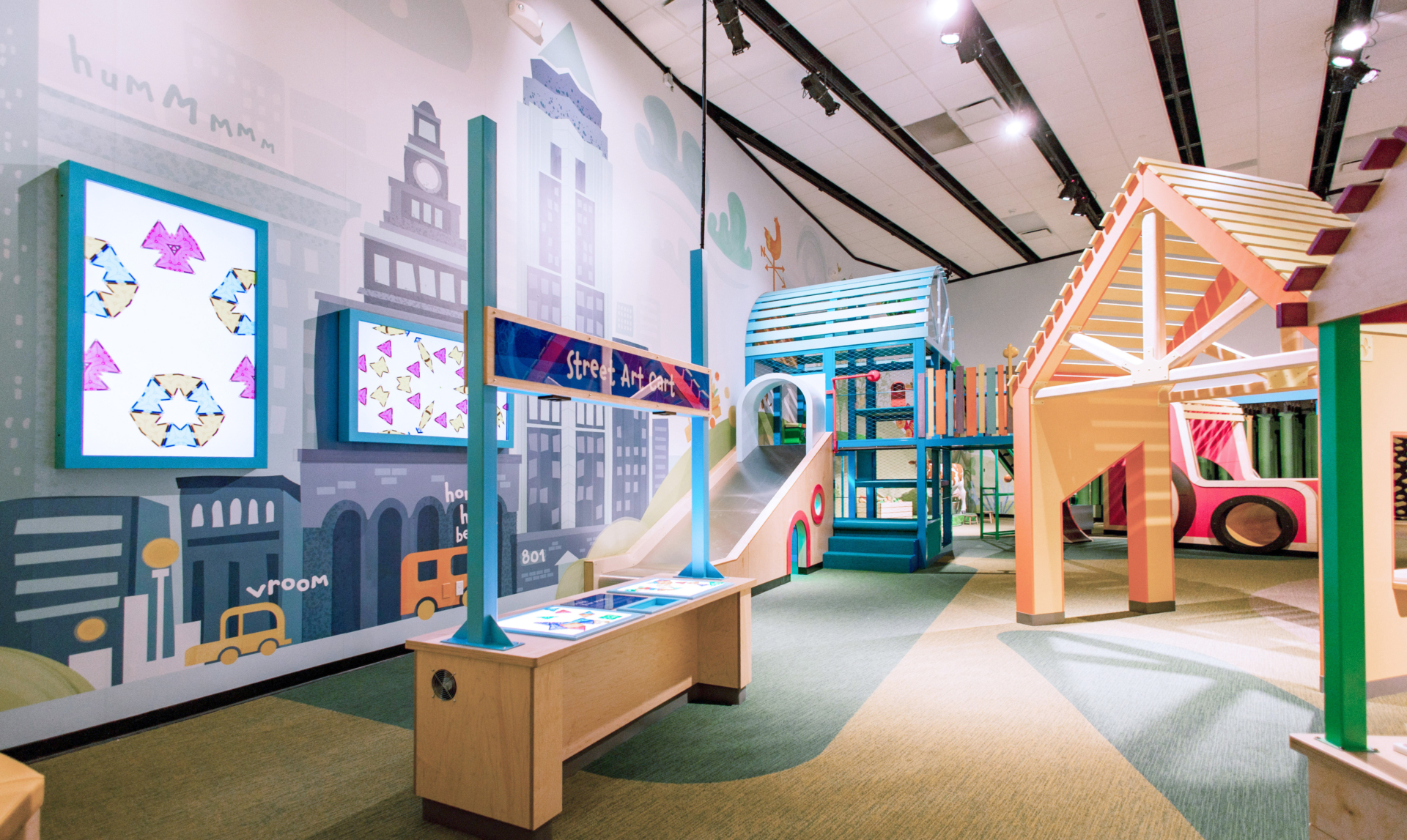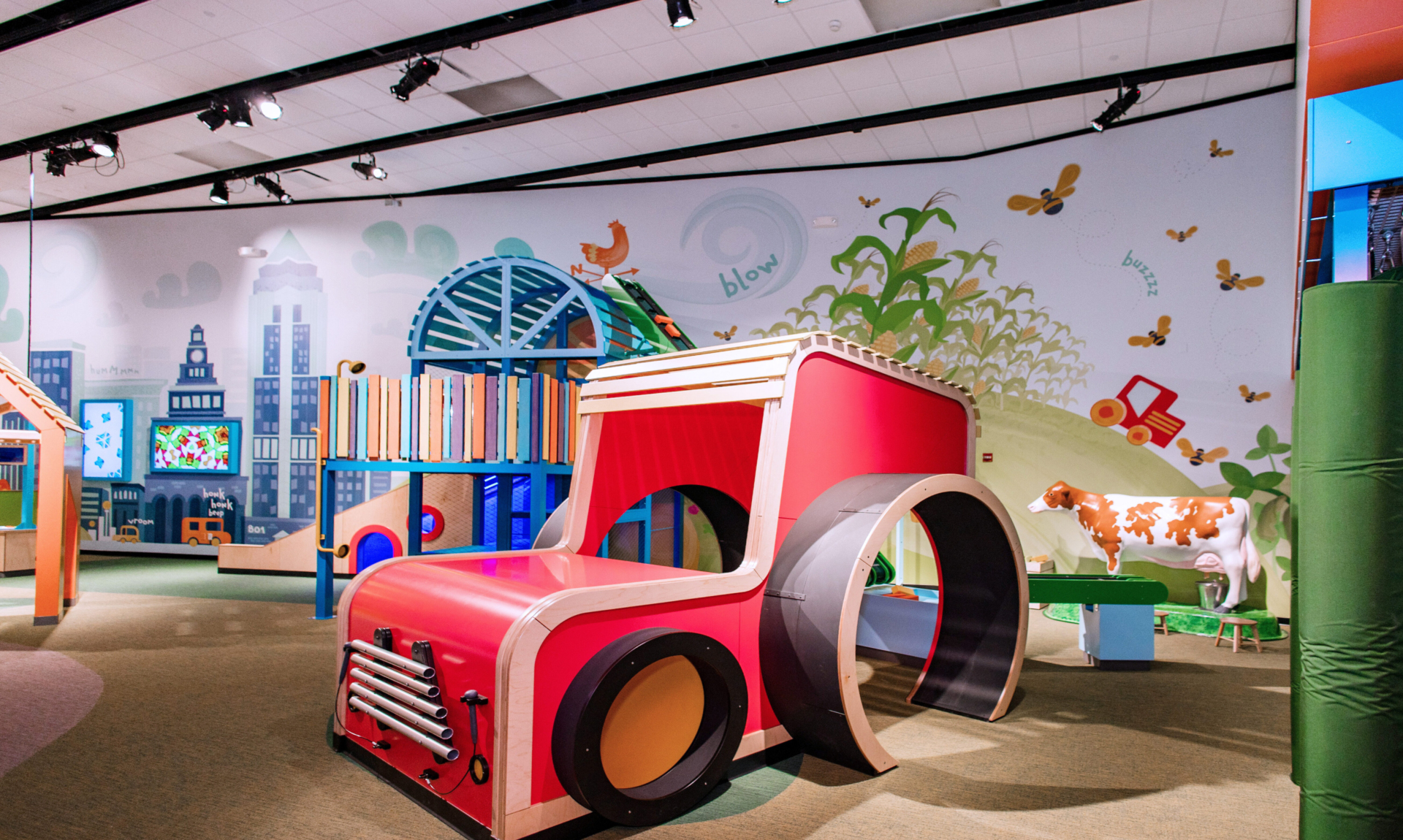 The new “Small Discoveries” exhibit at the Science Center of Iowa brings the richness of Iowa’s rural and urban landscapes to life for the museum’s earliest learners. The interconnected exhibits create a whimsical destination play space where STEM-based learning is just as important as having fun.